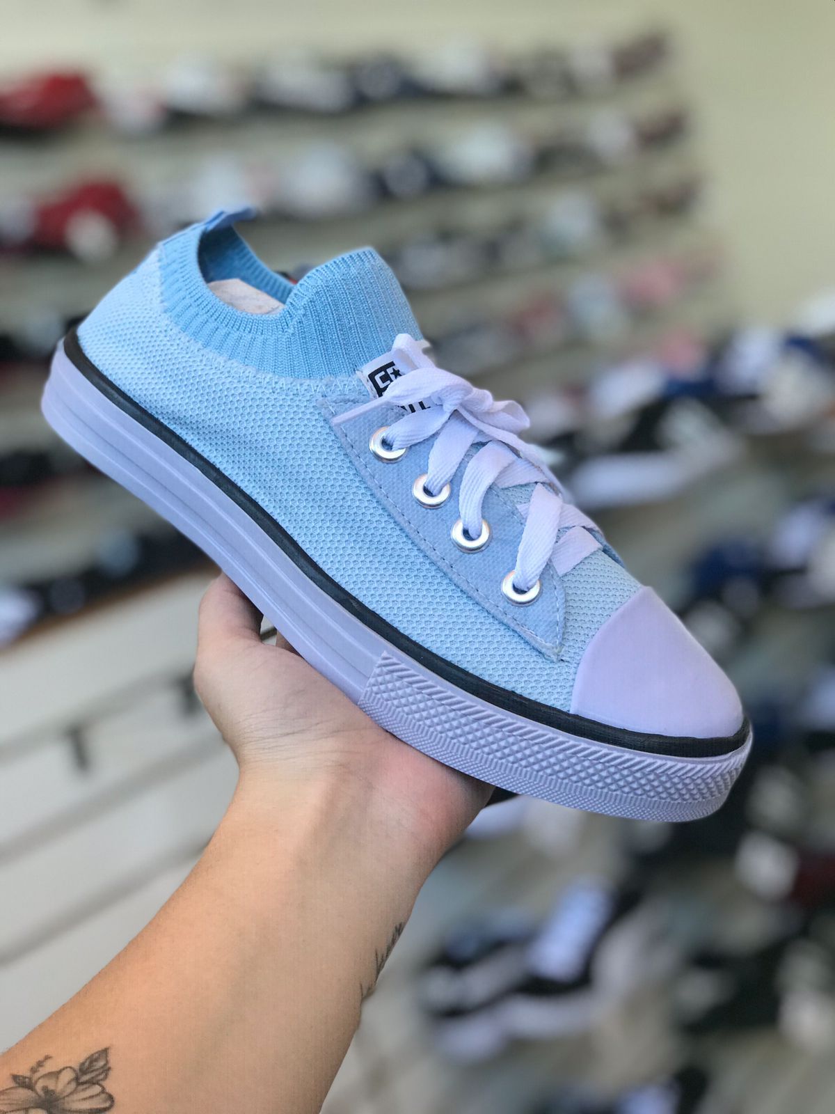 Tênis Star Socks Meia FemininoUm clássico do street style agora recriado no sistema calce fácil. O seu look urbano vai ser completo com mais esse modelo para a sua coleção. É confeccionado em lona e tecido, com ajuste com cadarço, solado de borracha vulcanizada e palmilha de EVA removível. Vista como uma meia e garanta mais praticidade ao seu dia-a-dia.
