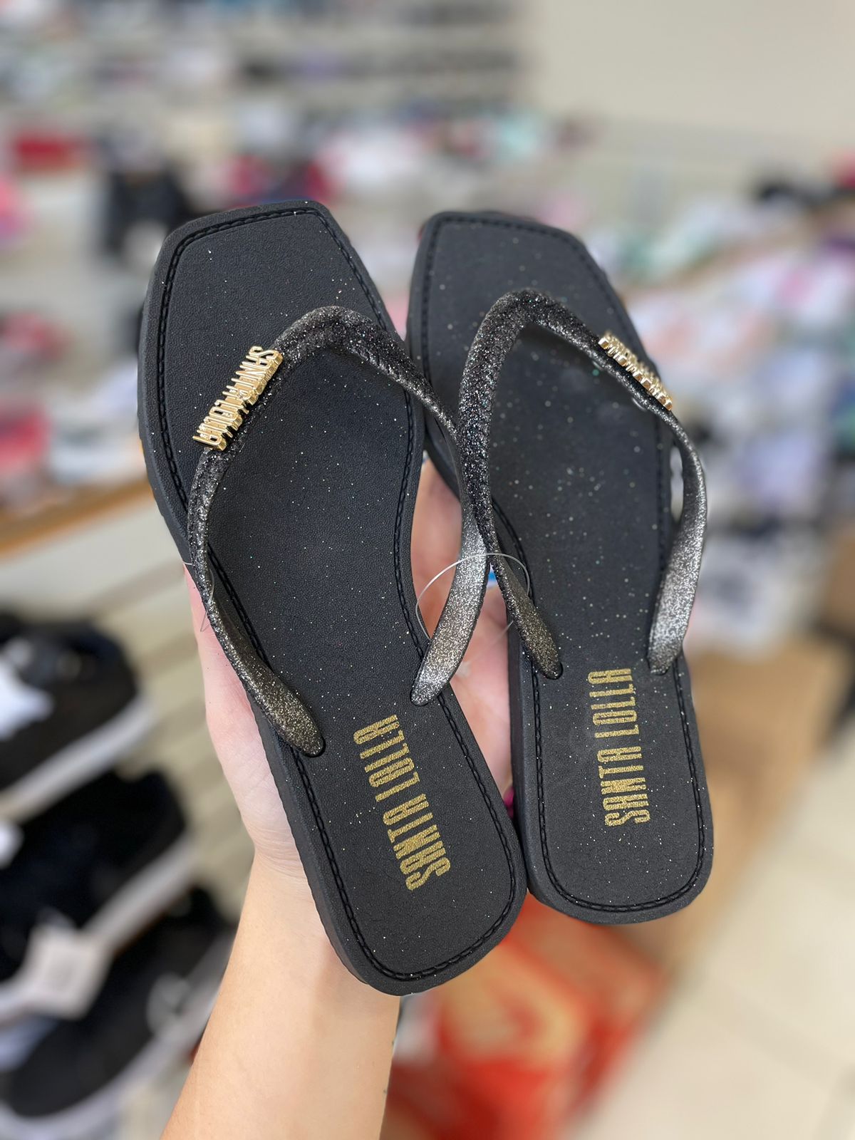Chinelo Santa Lolla Glitter-Preto