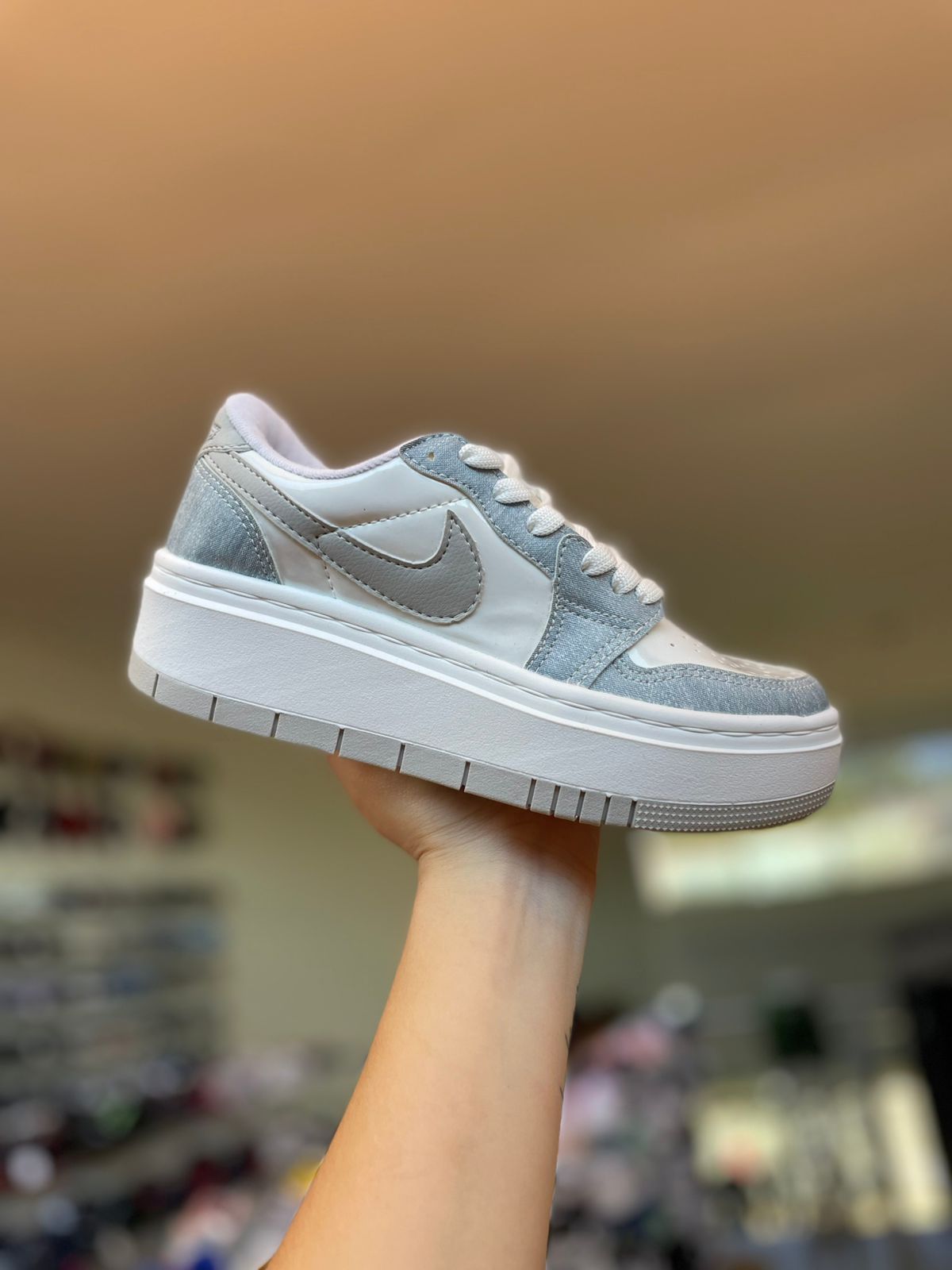 NK Air Jordan Plataforma Elevate-Azul Jeans e Branco